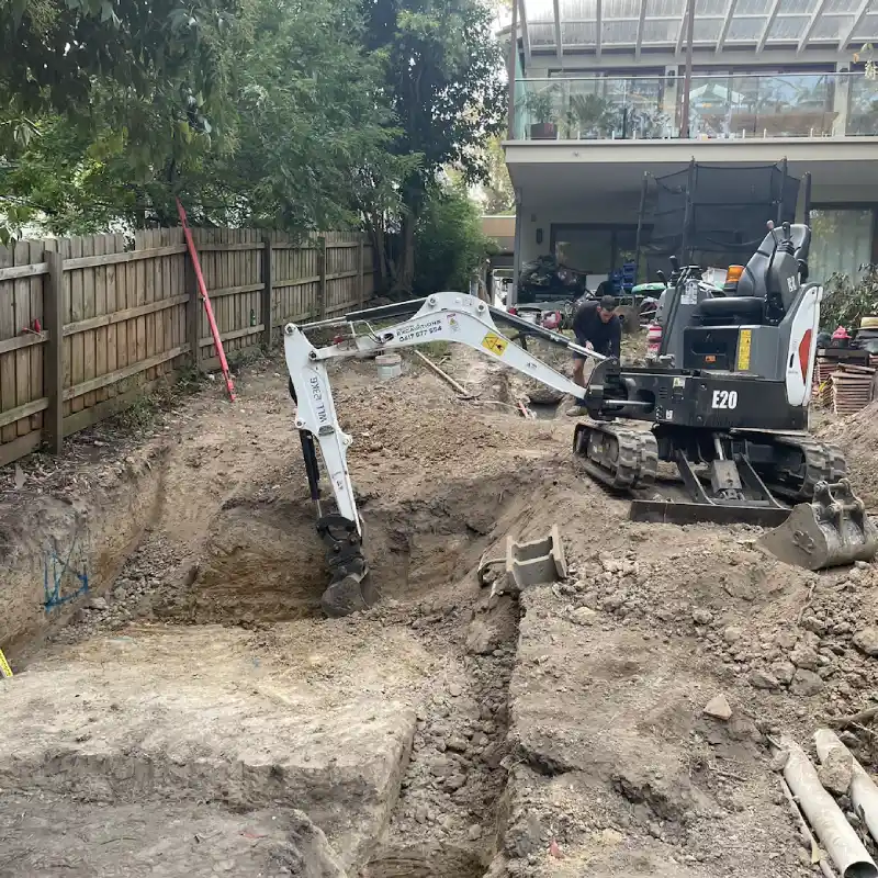 Detailed excavation service for trenches and footings. Accessible with a 2-tonne excavator in narrow spaces. Canopy removal capability.