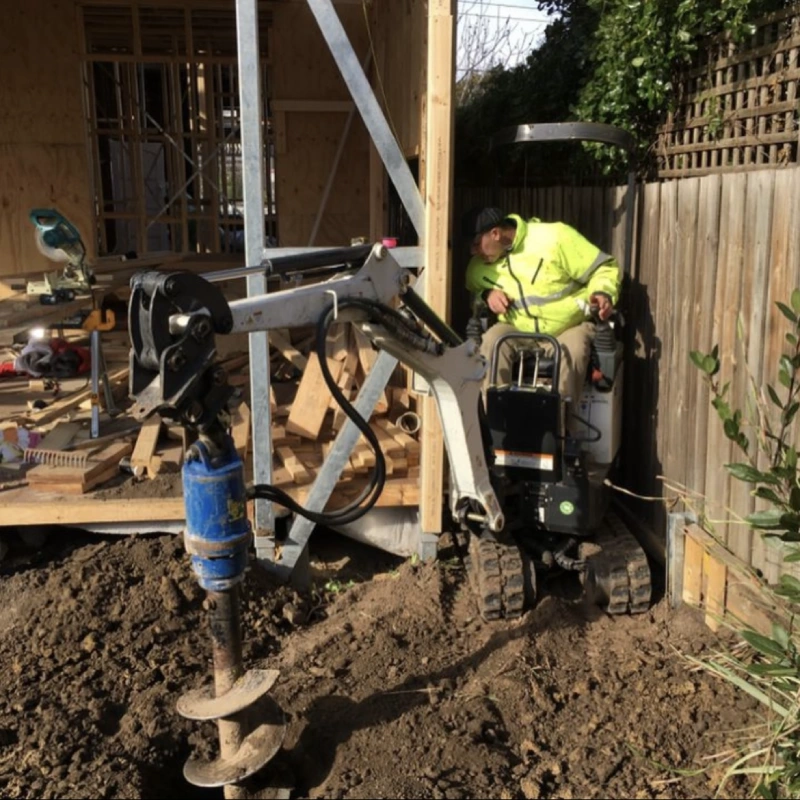 Our compact 2 tonne excavator is used for quick and efficient hole drilling, even in tight spaces. We have a range of different augers starting from 200mm, 350mm and 450mm. We have an extension that can get to a depth of 2.5m. We also have a 350mm and 450mm hole cleaners, so no need to clean your holes out by hand saving you time and effort.